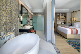 - 46-50 qm, Doppel, Meerblick (zum Teil), kombinierter Wohn-/Schlafraum, Sitzecke, Schreibtisch, Dusche oder Badewanne, Bademantel, Badeslipper, Haartrockner, Kosmetikspiegel, Klimaanlage, Minibar, Auffüllung regelmäßig, Softdrinks, Safe, Bügeleisen, TV (Sat-TV, PayTV, Flachbildschirm), DVD-Player, Balkon (möbliert), direkter Poolzugang, Butlerservice, Zutritt zur Club-Lounge, Frühstück in der Club-Lounge, nachmittags Kaffee/Tee und Gebäck, bei Ankunft im Zimmer Wasser