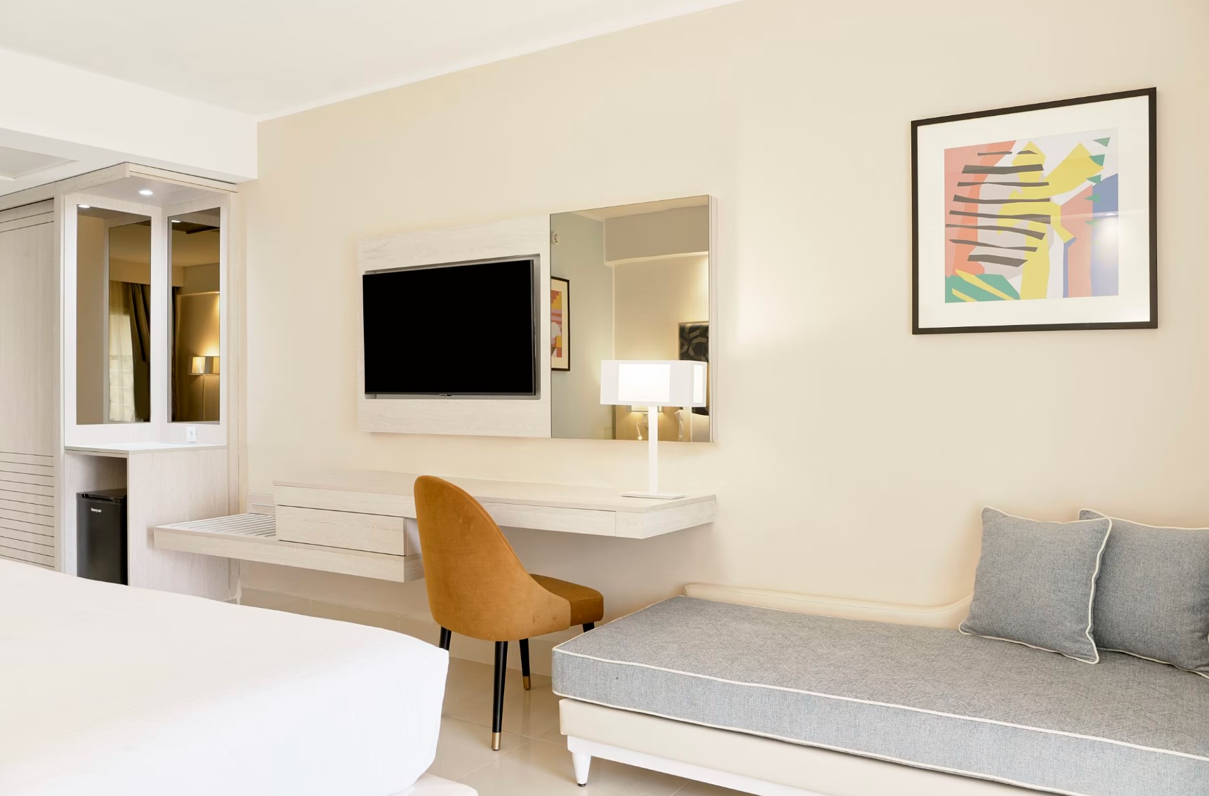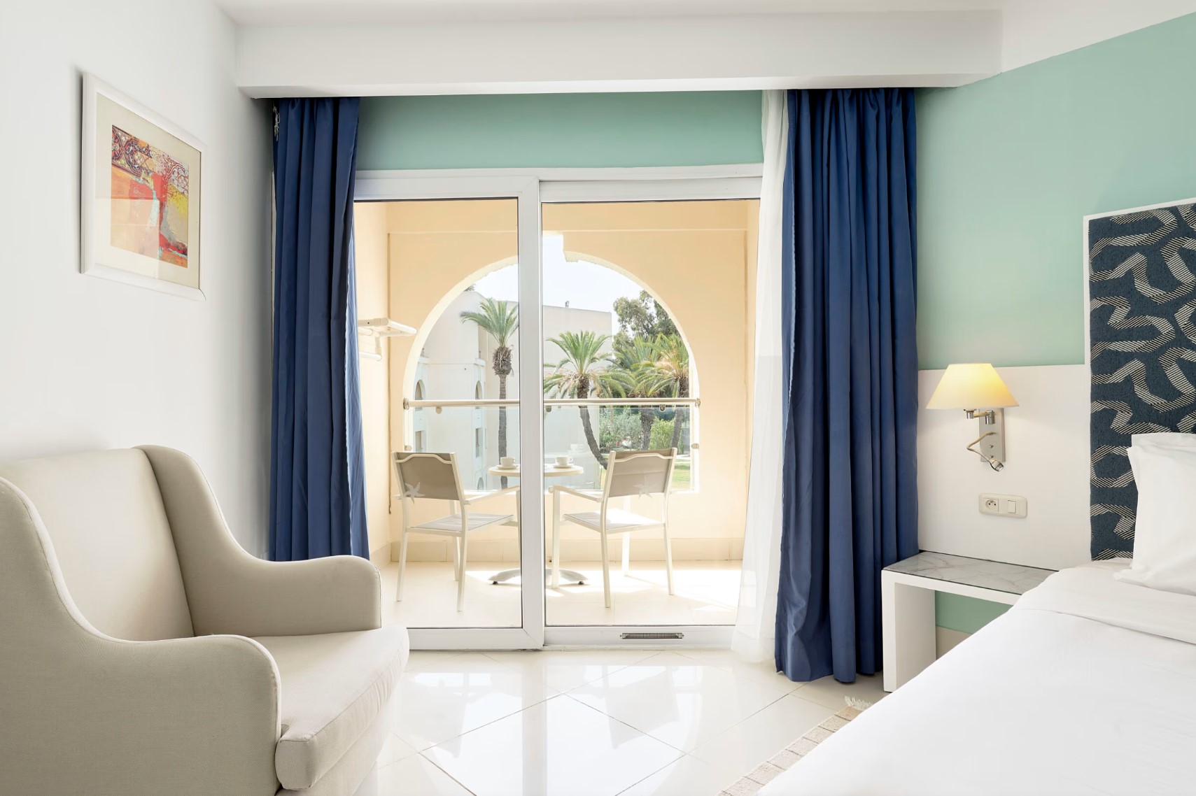 - Juniorsuite, Nichtraucherzimmer, Mindestalter im Zimmer: 16 Jahre, im Hauptgebäude, Landblick, Blick auf Garden, ca. 35 m², letzte Komplettrenovierung 2015, letzte Teilrenovierung 2015, Gesamtanzahl der Räume in diesem Zimmertyp: 2, 1 Queen Size Bett (200x200cm), Klimaanlage: November - März und Juni - September; saisonabhängig; wetterabhängig, zentral gesteuert, kalt, warm, Heizung: Oktober - März und Juni - August; saisonabhängig, zentral gesteuert, Fußboden: Fliesenboden, Safe: ohne Gebühr, Sitzecke, Sofa, Schreibtisch, Minibar: ohne Gebühr, Softdrinks: ohne Gebühr, Wasser: ohne Gebühr, alkoholische Getränke: ohne Gebühr, Minibarauffüllung: täglich, Telefon, Fernseher: Flatscreen, im Schlafzimmer, deutsches Programm, Roomservice: täglich, gegen Gebühr, Dusche, WC, Bademantel: ohne Gebühr, Slipper: ohne Gebühr, Föhn, Kosmetikspiegel, Balkon: mit Sitzgelegenheit