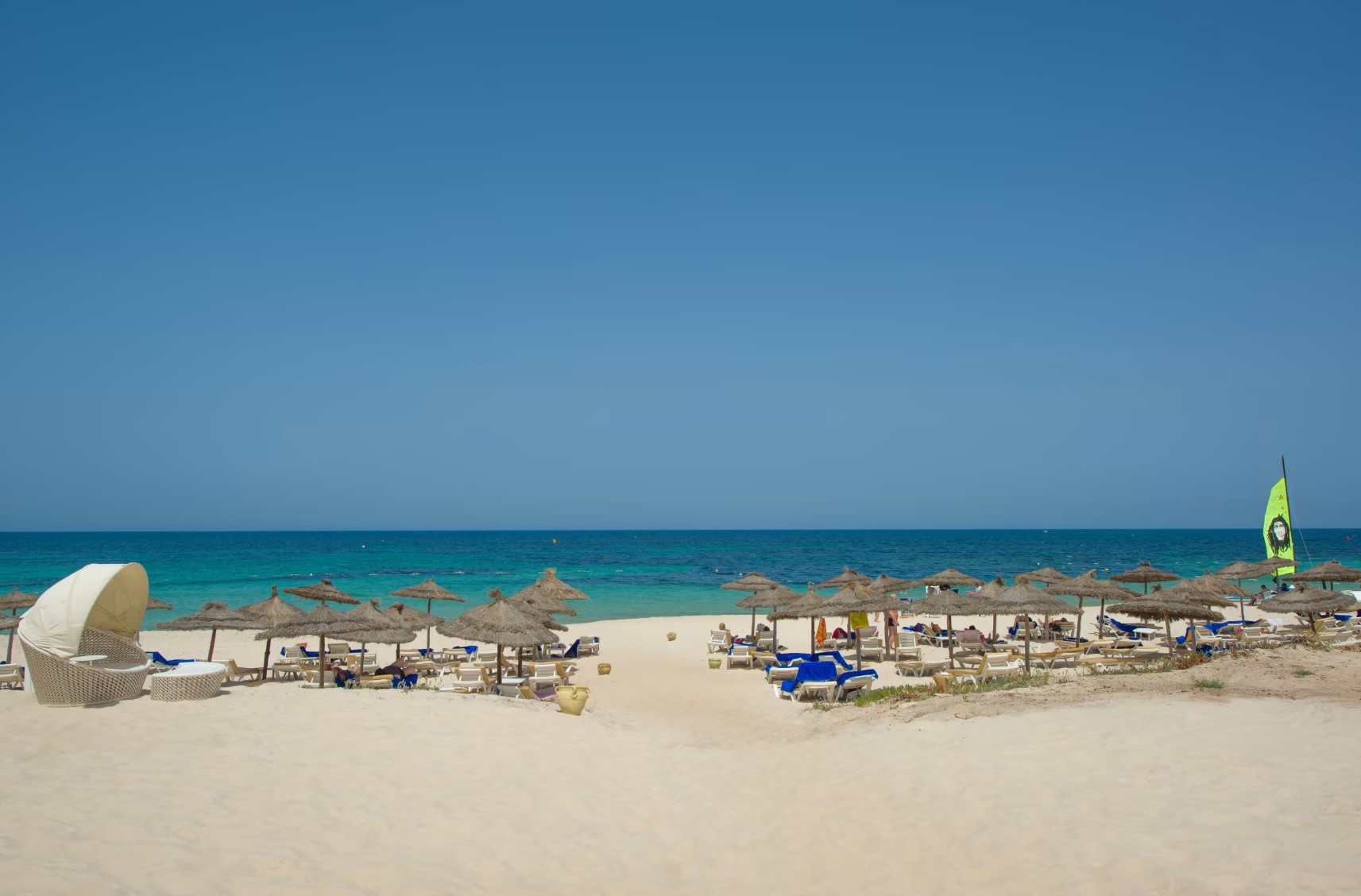 - Direkt am langen, feinen Sandstrand und in unmittelbarer Nähe zum Golfplatz gelegen. Port El Kantaoui mit vielen Geschäften und Restaurants sowie der schöne Hafen sind ca. 3 km entfernt. Die Flughäfen Enfidha und Monastir sind ca. 40 km, der Flughafen Tunis ca. 140 km entfernt.