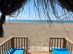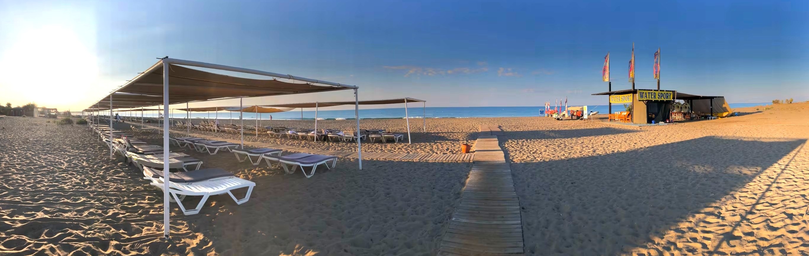 - direkt am Strand, ca. 2,5 km langer, hoteleigener Abschnitt am kieseligen Sandstrand