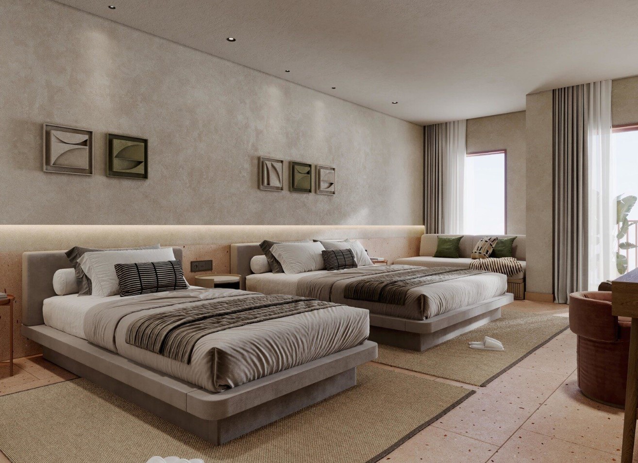 - Familienzimmer, Nichtraucherzimmer, im Hauptgebäude, Landblick, ca. 50 m², letzte Komplettrenovierung 2025, Gesamtanzahl der Räume in diesem Zimmertyp: 2, Aufteilung wie folgt: kombiniertes Wohn-/Schlafzimmer, 1 Schlafzimmer, 1 Doppelbett, 2 Schlafsofas, Klimaanlage: zentral gesteuert, Fußboden: Fliesenboden, Safe, Telefon, Fernseher, Roomservice: gegen Gebühr, Dusche, WC, 2 Bäder, Balkon: mit Sitzgelegenheit