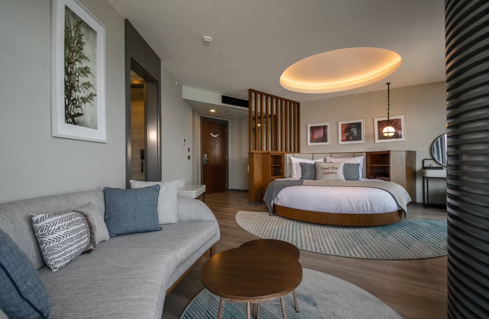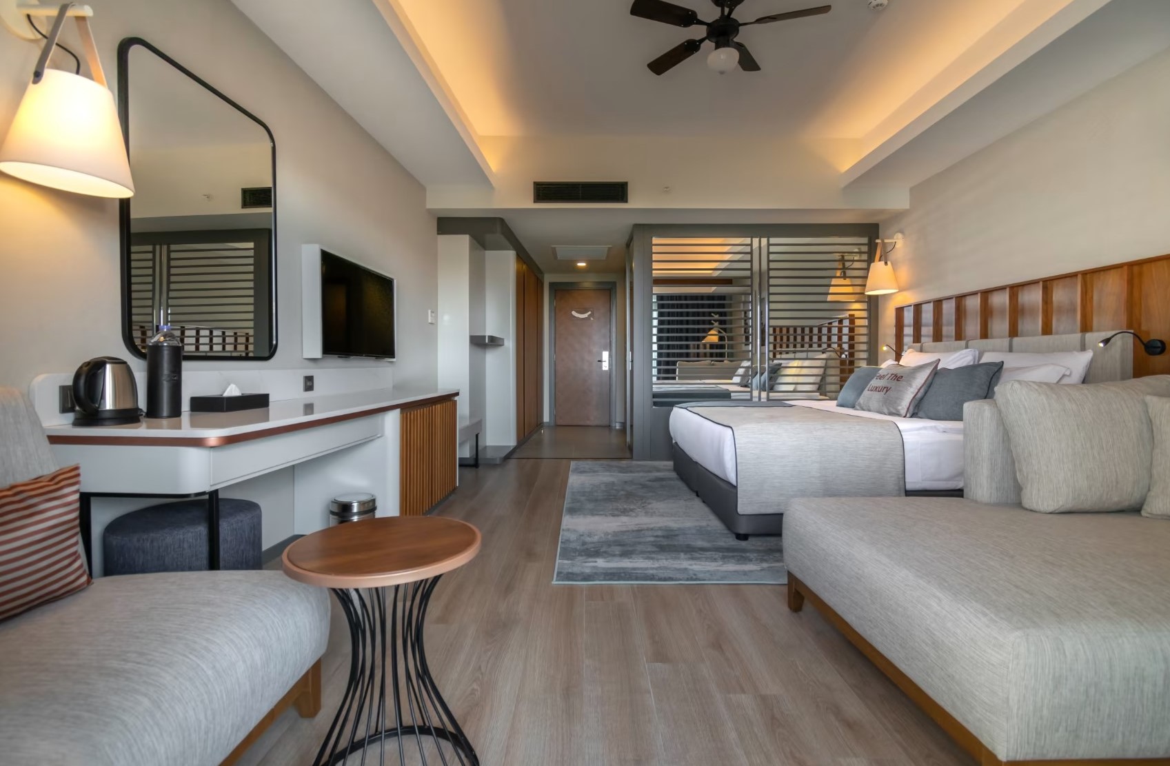 - Doppelzimmer, Nichtraucherzimmer, im Hauptgebäude, Landseite, Landblick, Blick auf Land View, ca. 35 - 40 m², Gesamtanzahl der Räume in diesem Zimmertyp: 1, Aufteilung wie folgt: 1 Schlafzimmer, 1 Doppelbett (160x200cm), 1 Schlafsofa, Babybett: ohne Gebühr, bei All Inclusive inklusive, Anfrage & Reservierung notwendig, Klimaanlage: ohne Gebühr, bei All Inclusive inklusive, Januar - Dezember; saisonabhängig; wetterabhängig, individuell regelbar, kalt, warm, Fußboden: Laminat, Safe: ohne Gebühr, bei All Inclusive inklusive, Deckenventilator, Schreibtisch, Kaffee-/Teezubereiter, Wasserkocher, Minibar: ohne Gebühr, bei All Inclusive inklusive, Softdrinks: ohne Gebühr, bei All Inclusive inklusive, Wasser: ohne Gebühr, bei All Inclusive inklusive, alkoholische Getränke: ohne Gebühr, bei All Inclusive inklusive, Minibarauffüllung: täglich, Telefon, Internet: WLAN/WiFi: ohne Gebühr, bei All Inclusive inklusive, Fernseher: Flatscreen, deutsches Programm, Sat-TV, Roomservice: täglich, gegen Gebühr, Barzahlung, Reinigungsservice: täglich, ohne Gebühr, bei All Inclusive inklusive, Dusche, WC, Bademantel: ohne Gebühr, bei All Inclusive inklusive, Slipper: ohne Gebühr, bei All Inclusive inklusive, Föhn, Kosmetikspiegel, Balkon: mit Sitzgelegenheit