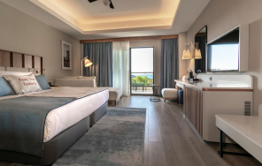 - Doppelzimmer, im Hauptgebäude, seitlicher Meerblick, Landblick, Blick auf Side Sea View, ca. 35 m², Gesamtanzahl der Räume in diesem Zimmertyp: 1, Aufteilung wie folgt: 1 Schlafzimmer, 1 Double Bed (160x200cm), 1 Schlafsofa (90x190cm), Babybett: ohne Gebühr, bei All Inclusive inklusive, Anfrage & Reservierung notwendig, Klimaanlage: ohne Gebühr, bei All Inclusive inklusive, Januar - Dezember; wetterabhängig, individuell regelbar, kalt, warm, Fußboden: Laminat, Safe: ohne Gebühr, bei All Inclusive inklusive, Sofa, Schreibtisch, Kaffee-/Teezubereiter, Wasserkocher, Minibar: ohne Gebühr, bei All Inclusive inklusive, Softdrinks: ohne Gebühr, bei All Inclusive inklusive, Wasser: ohne Gebühr, bei All Inclusive inklusive, alkoholische Getränke: ohne Gebühr, bei All Inclusive inklusive, Minibarauffüllung: täglich, Telefon, Internet: WLAN/WiFi: ohne Gebühr, bei All Inclusive inklusive, Fernseher: Flatscreen, deutsches Programm, Sat-TV, Roomservice: täglich, gegen Gebühr, Barzahlung, Reinigungsservice: täglich 09:00 Uhr - 16:00 Uhr, ohne Gebühr, bei All Inclusive inklusive, Dusche, WC, Bademantel: ohne Gebühr, bei All Inclusive inklusive, Slipper: ohne Gebühr, bei All Inclusive inklusive, Föhn, Kosmetikspiegel, Balkon: mit Sitzgelegenheit