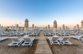 - Das Resort liegt ruhig und direkt am Strand mit privatem Hotelabschnitt. Die nächsten Einkaufsgelegenheiten befinden sich nur wenige Gehminuten entfernt. Die Altstadt von Side erreicht man durch die weitläufige Promenade, die sich am Strand entlang erstreckt, der historische Hafen von Side ist ca. 3 km entfernt. Die nächste Bushaltestelle befindet sich in ca. 150 Meter Entfernung. Der Flughafen Antalya liegt in einer Distanz von ca. 64 km.