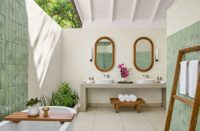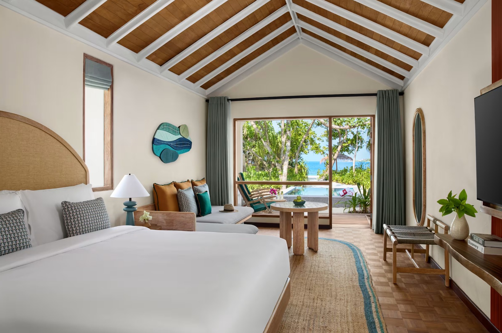 - 91-100 qm, Villa, Strandlage, Sonnenuntergangsseite, nach oben halb offenes Bad, Badewanne, Regendusche, WC, Haartrockner, Klimaanlage, Ventilator, Minibar kostenpflichtig, Safe, TV, Bluetooth-Lautsprecher, WLAN, Wasserkocher, Espressomaschine, Kaffee/Tee, Terrasse (möbliert), direkter Strandzugang, Plunge Pool