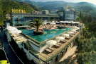 Montenegro - Budva | Oberhalb des Ortes und des Becici-Strandes. Ein Fußweg mit Brücken und Stufen führt über die Hauptstraße zum breiten, bewirtschafteten Kiesstrand.