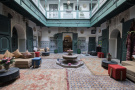 Marokko - Marrakesch | Der schöne, mit Mosaiken verzierte Innenhof mit einem kleinen Brunnen und Sitzgelegenheiten lädt zum Verweilen und Entspannen ein. Direkt neben dem Bahia-Palast im Herzen der Medina besticht das Riad Les Oliviers mit einer Terrasse mit Ausblick auf das Atlasgebirge.